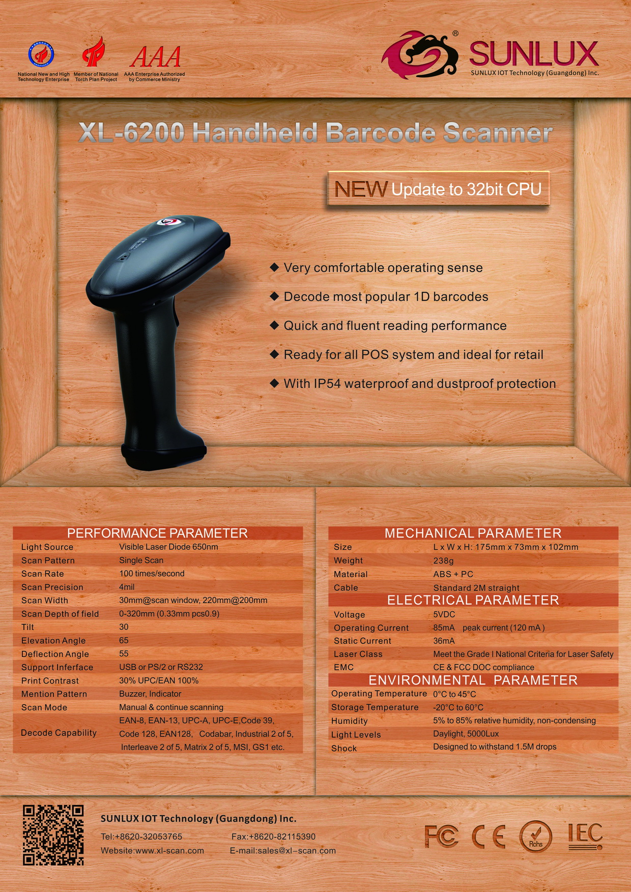 Лазерний сканер SUNLUX XL-6500 якісно зчитує та декодує 1D-штрих-коди популярних форматів